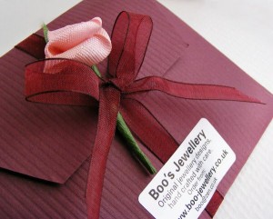 I use my ribbon roses to decorate my jewellery packaging to customers, on my hand made envelopes – a tutorial for which can be downloaded from the bottom of the page of an earlier blog.Some initial observations: