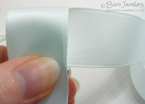 The small pink rosebuds on the packaging were made with 15mm (0.6″) wide ribbon, the larger satin ones for the tutorial were made with 25mm (1″) ribbon.