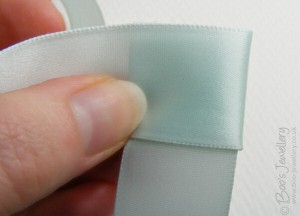 The roses shown in my photographs were all made with a length of ribbon very approximately 12 times as long as it is wide. So if your ribbon is 25mm (1″) wide, you’ll use a piece approximately 300mm (12″) long for each finished rose – but you’ll need a piece twice this length initially to form the rose, more below. The longer the ribbon you use, the fuller the resulting bloom will be.