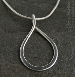 I wanted to make a teardrop pendant from a single loop where it was twisted at the top to form an integral bail – one closed enough to prevent it slipping off the chain and turning upside down, but clearly visually all one sinuous shape.