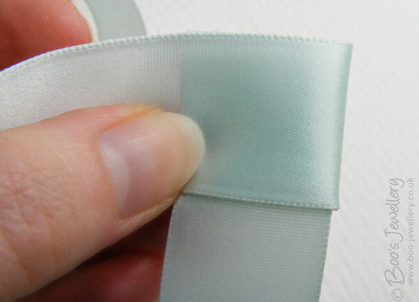 The small pink rosebuds on the packaging were made with 15mm (0.6″) wide ribbon, the larger satin ones for the tutorial were made with 25mm (1″) ribbon.